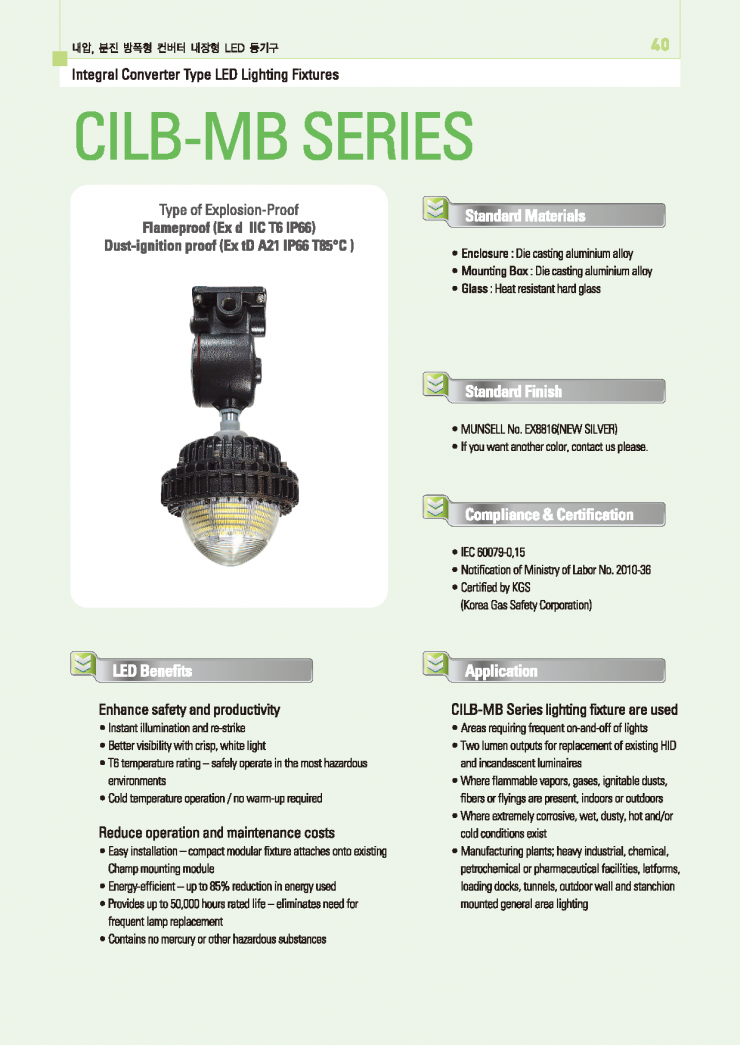 * 내압.분진방폭 컨버터내장형 LED방폭등 (SEBP-CILB-MB)